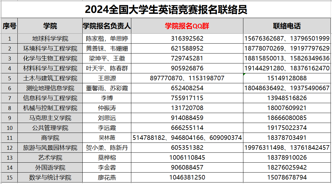 附件1:2024“大英竞赛”各乐鱼leyu(中国)联络员信息