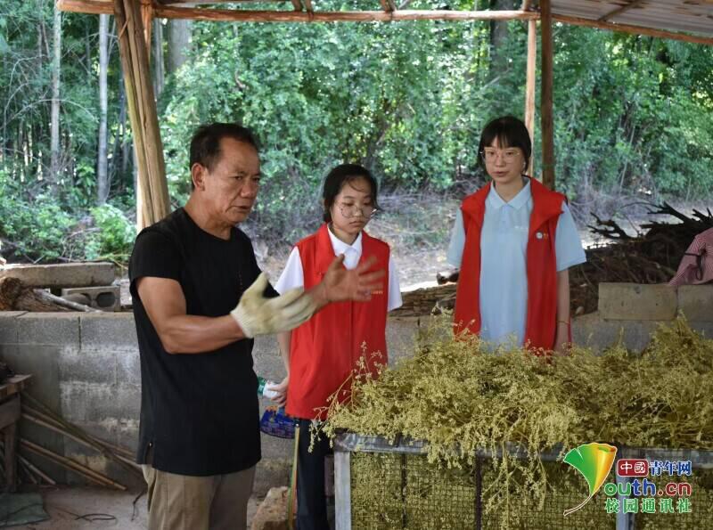 图为昊野金槐种植专业合作社负责人为实践团讲解金槐“杀青”流程的相关知识