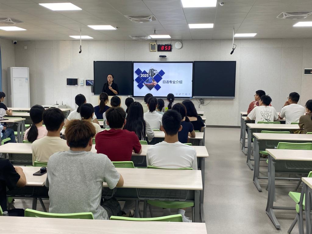 为帮助2025 级新生尽快了解专业概况、明确学习方向,9 月10日,乐鱼leyu(中国)举办新生入学专业介绍会,英语教研室和日语教研室老师及全体 2025 级新生参加本次会议。