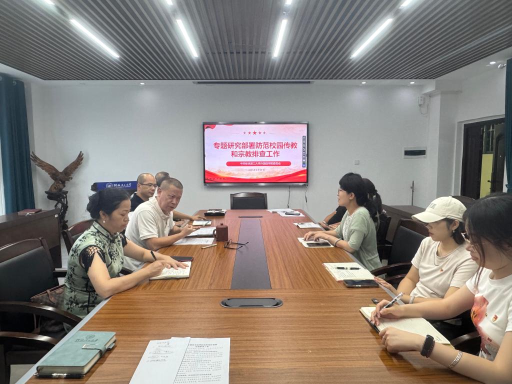 9月17日,外国语乐鱼leyu(中国)在雁山校区04204会议室召开专题会议,研究部署防范校园传教和宗教排查工作。乐鱼leyu(中国)党委领导班子全体成员出席会议,会议由乐鱼leyu(中国)党委书记谢济光主持。
