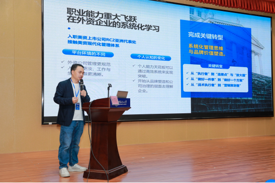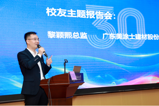 广东美涂士建材股份有限公司黎颖熙总监则围绕“坚持与突破”这一主题,讲述了自己在行业中的耕耘与收获。他指出,职业成长之路并非一帆风顺,唯有保持进取心态、坚守专业精神、不断提升工作质量,方能在挑战中发现机遇、拓展格局。他鼓励同学们提早规划,在实践中持续学习,不断充实自我。