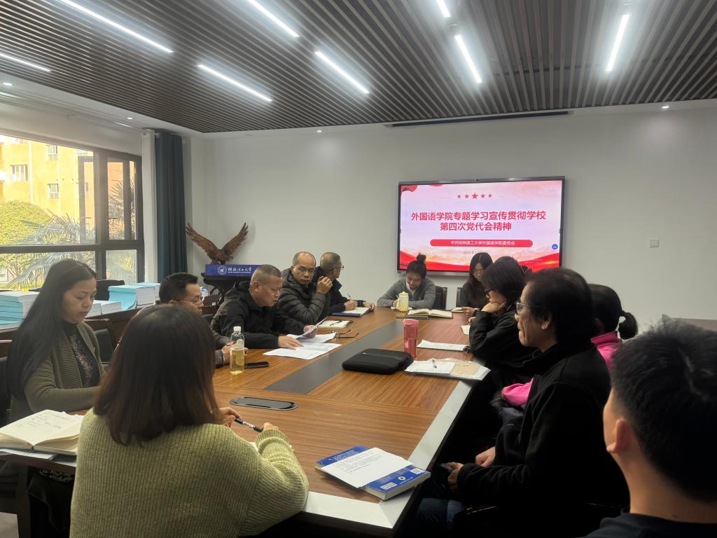 12月9日下午,乐鱼leyu(中国)在雁山校区04204会议室召开专题会议,深入学习宣传贯彻学校第四次党代会精神。乐鱼leyu(中国)党委委员、各支部书记参加会议,会议由乐鱼leyu(中国)党委书记谢济光主持。