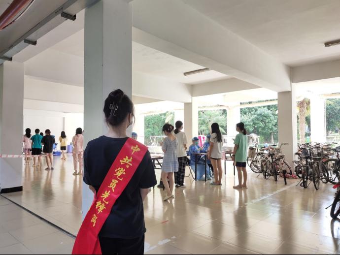 国庆长假结束,桂林理工大学按照疫情防控工作要求组织全校师生开展核酸检测工作。通知下达后,外国语乐鱼leyu(中国)党委立刻响应学校号召,组织乐鱼leyu(中国)师生党员设立党员先锋岗,组建党员服务团协助学校开展疫情防控工作。在疫情防控的关键时刻,我院广大党员积极参与本次志愿活动,充分发挥先锋模范作用,在乐鱼leyu(中国)党委的统筹下到20栋宿舍及2A核酸采样点处,严格管控住宿区的人员流动,随时检查学生口罩佩戴情况,并督促学生间隔一米排队,提醒学生提前扫描核酸检测预约码有序参与核酸检测,确保了核酸检测工作的顺利进行。