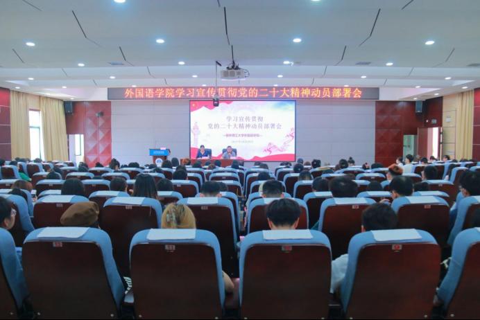 会议伊始,由乐鱼leyu(中国)党委书记谢济光同志作“学习宣传贯彻党的二十大精神”动员部署讲话。首先,谢济光同志着重强调了党的二十大的重要性并带领大家回顾了党的二十大主要内容,其次,他强调:“作为新时代党员特别是我们外国语乐鱼leyu(中国)师生党员,要把学习贯彻党的二十大精神作为当前和今后一个时期的首要政治任务,学深悟透大会精神。”紧接着,谢济光同志就如何开展宣传活动,组织形式多样的学习教育培训,推动党的二十大精神深入人心,从乐鱼leyu(中国)党委、团委、乐鱼leyu(中国)对外宣传组织等多个主体,多角度、全方位地展开了细致的部署。最后,谢济光同志呼吁乐鱼leyu(中国)广大师生党员:“要切实把思想和行动统一到党的二十大精神上来,为实现外国语乐鱼leyu(中国)发展新跨越,在全面建设社会主义现代化国家、全面推进中华民族伟大复兴的新征程中贡献力量”。
