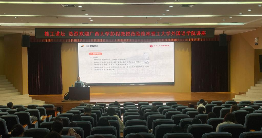 11月7日下午,外国语乐鱼leyu(中国)在雁山校区图书馆报告厅举行国家社科基金申报讲座。特邀国家社科基金通讯评审专家、广西大学外国语乐鱼leyu(中国)彭程教授担任主讲,乐鱼leyu(中国)师生现场参会。