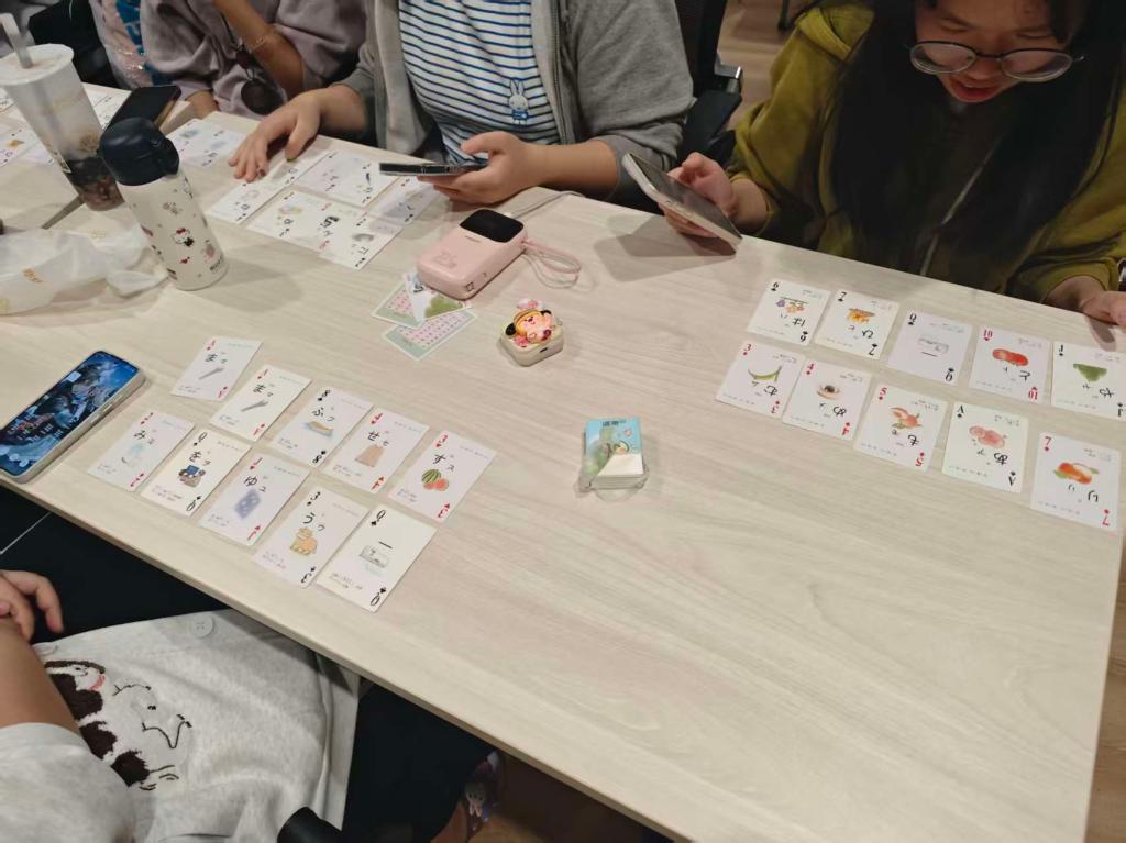 活动在“古今东西”词汇接龙中拉开序幕,两队成员需在五秒内针对特定主题完成词语接龙。比赛节奏紧张,既考验词汇量储备,更展现同学们的快速反应能力。随后进行的“五十音卡牌创词”环节将现场气氛推向高潮。参与者通过随机抽取的五十音卡片组合单词,并通过相互交换卡牌争取拼出更高难度的词汇。场内瞬间化身为活跃的“词汇交易市场”,大家在互动中深化了对日语构词规律的直观理解。