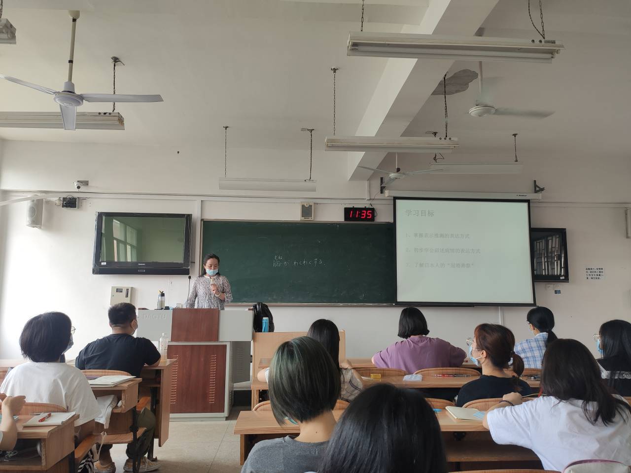 5月26日上午,我院日语专业邓圆老师与曾文华老师先后在雁山05610和05611教室进行了2019年度课程思政立项项目:基础日语(二)、高级日语(二)的公开观摩课。日语教研室10名教师对公开课进行了观摩,并在课后进行了课程反思与讨论。