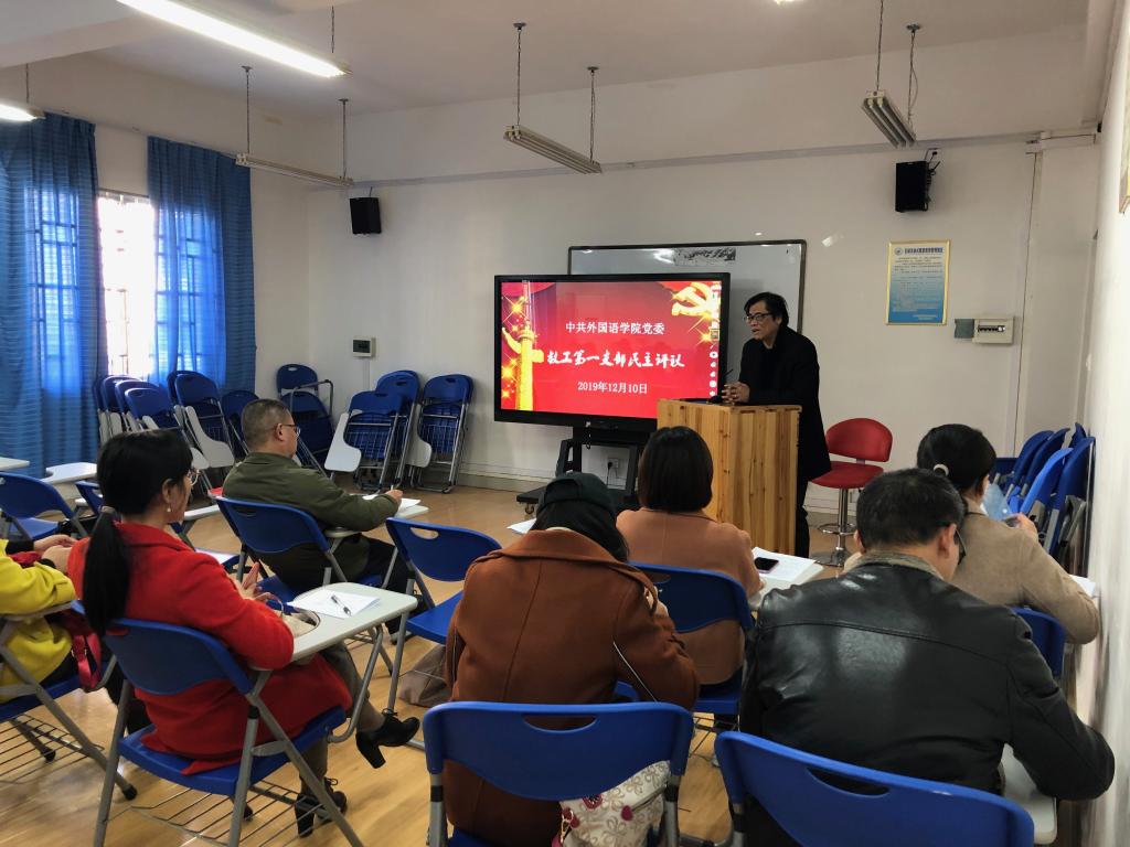 12月10日下午,我院教工一支部党员同志在雁山校区04206教室参加了支部2019年民主评议会。本次民主评议会由支部书记张华同志主持。外国语乐鱼leyu(中国)党委书记谢济光同志以普通党员的身份参加了民主评议会。