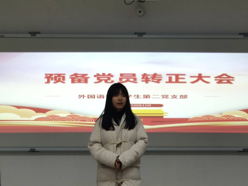 2020年12月15日,外国语乐鱼leyu(中国)学生党员二支部04305召开2020秋季学期预备党员转正大会。支部党员、预备党员、发展对象参加本次会议。本次会议由蒋媛同志主持。
